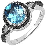 Here are some of the great features of 2.80 Carat Genuine Blue Topaz & Black Diamond Sterling Silver Ring